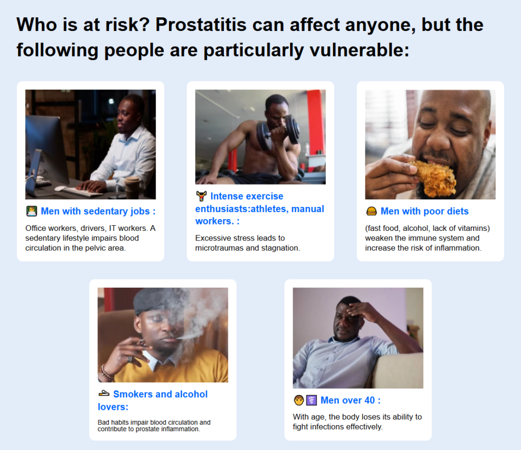 Prostatitis is one of the most widespread urological conditions affecting adult men worldwide, including a significant number of men in Kenya. This condition is characterized by inflammatory processes in the prostate gland and is often accompanied by persistent discomfort that interferes with daily life. Common manifestations include pain in the pelvic region and lower back, burning or cutting sensations during urination, frequent urges to urinate, especially at night, and a general decline in physical well-being.